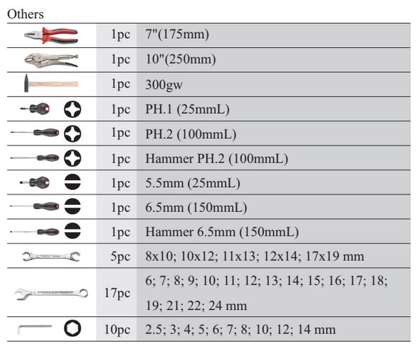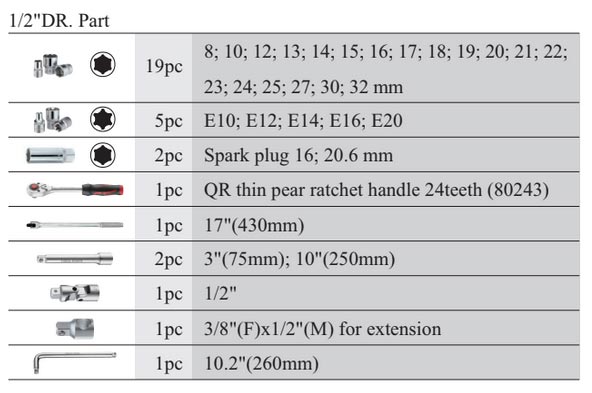 Professional Drawer Tool Chest & Tools Set 7 Drawer Trolley Tools Combination Wrench Set Humberger Toggle Menu 142pc 1/4" & 3/8" & 1/2" Combination set